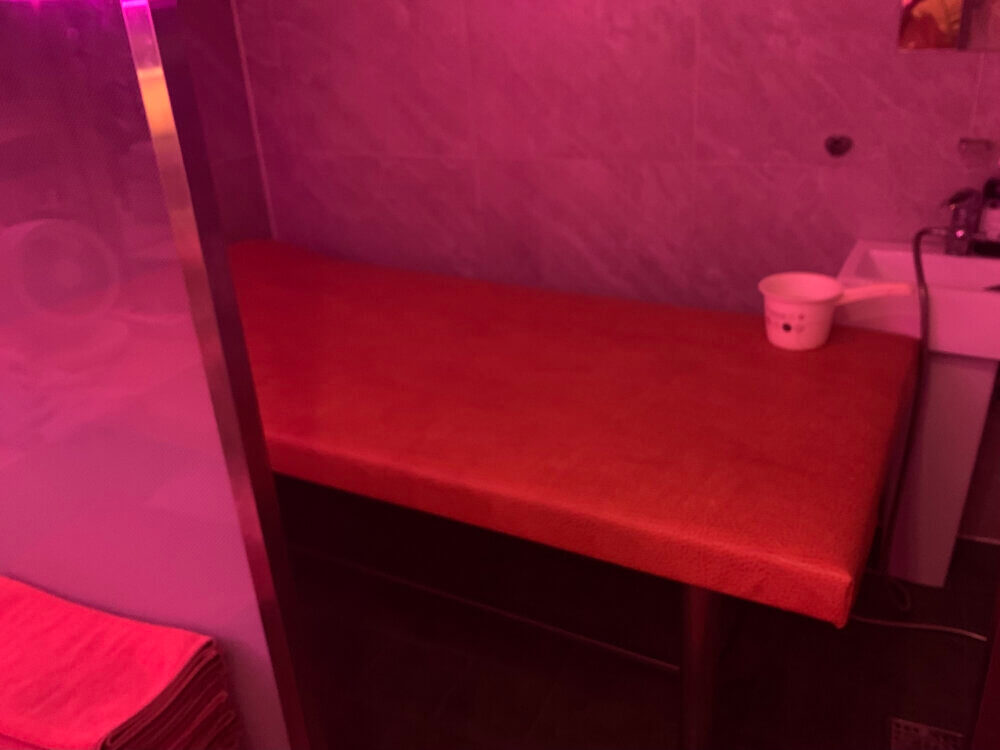 エレベーターを降りると、薄暗い廊下の両脇に10部屋ほどの個室が並んでいる。各部屋の扉の隙間から漏れる光と、微かに聞こえる声。すでにサービスを受けている客の気配が伝わってくる。