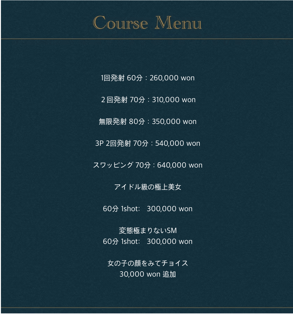 | アイドル級美女(60分) | 300,000ウォン(約33,000円) |