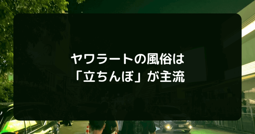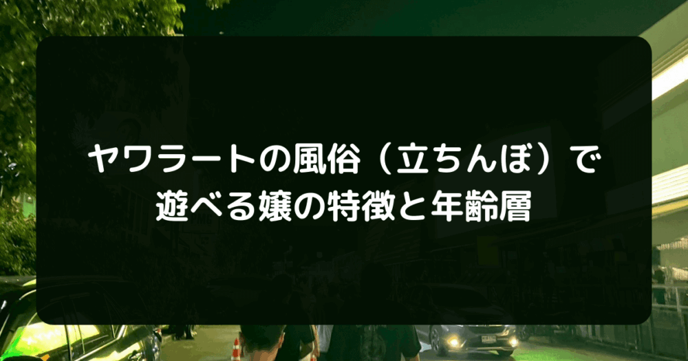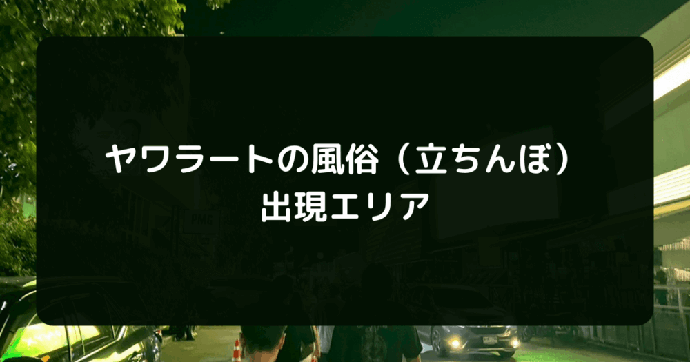 本記事では、ヤワラートの立ちんぼの特徴や料金相場、注意点を徹底解説する。記事後半では、ヤワラートに満足できなかった場合の代替エリアも紹介するため、ヤワラートの風俗(立ちんぼ)に不安を感じている読者は、ぜひ参考にしてほしい。
