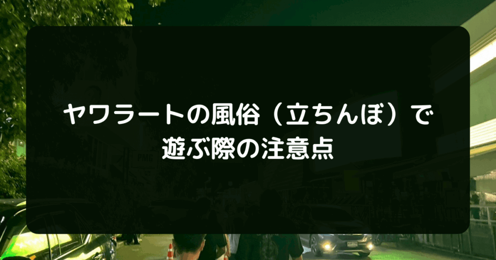 もしヤワラートで遊ぶなら、貴重品管理を徹底し、自己責任の範囲で楽しんでほしい。