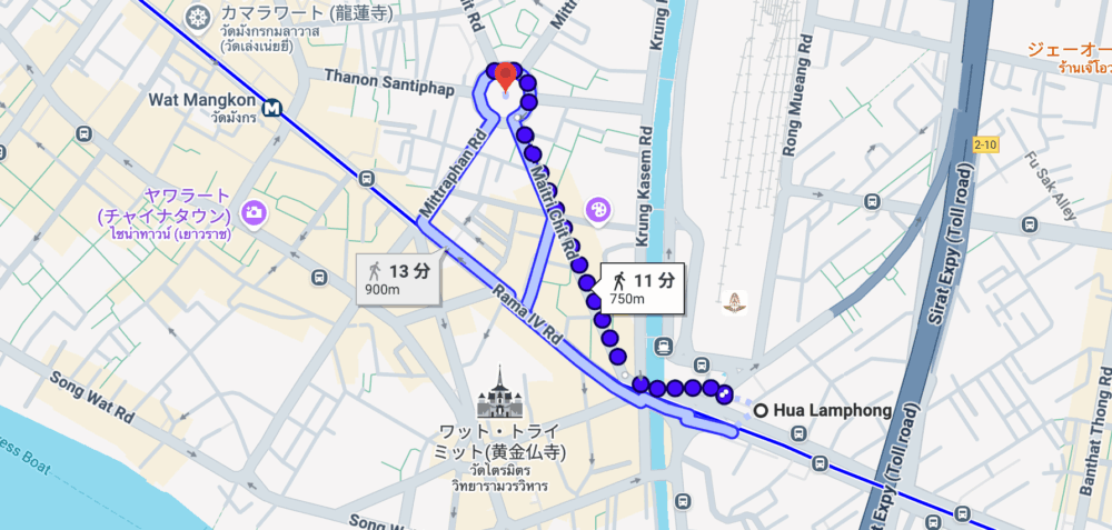 ※MRT(地下鉄)ブルーライン・フアランポーン駅からジュライロータリーまでの経路