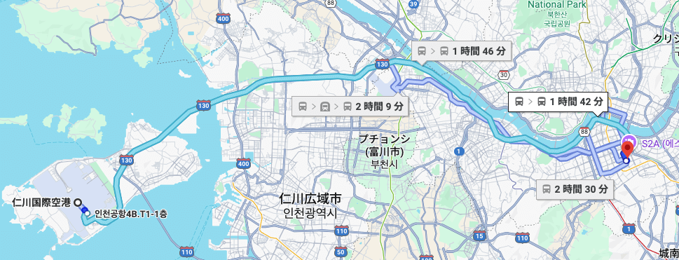 アクセス面でも利便性が高い。仁川国際空港からの所要時間は、電車で約1時間35分〜2時間程度。