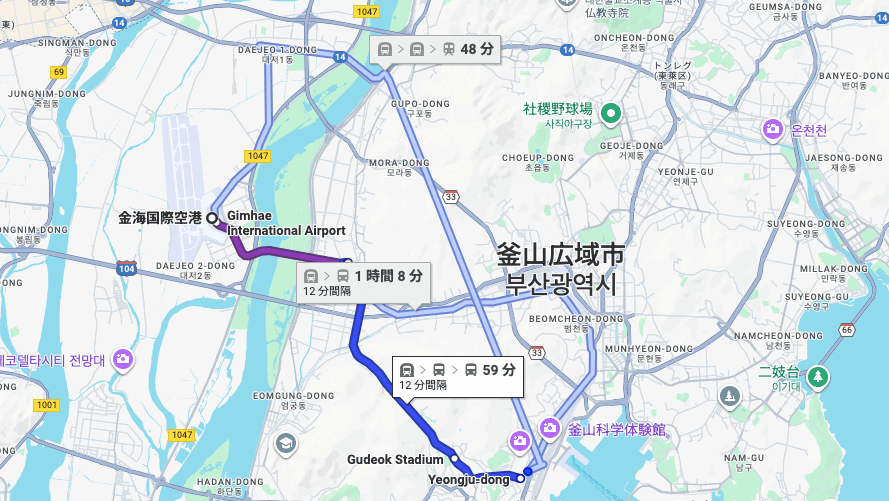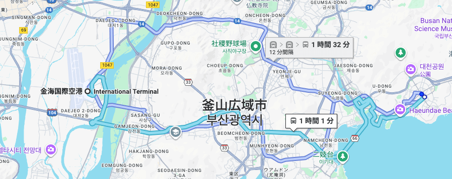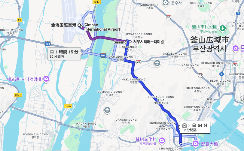 ※金浦国際空港からワノルドン(チャガルチ駅)までの経路。