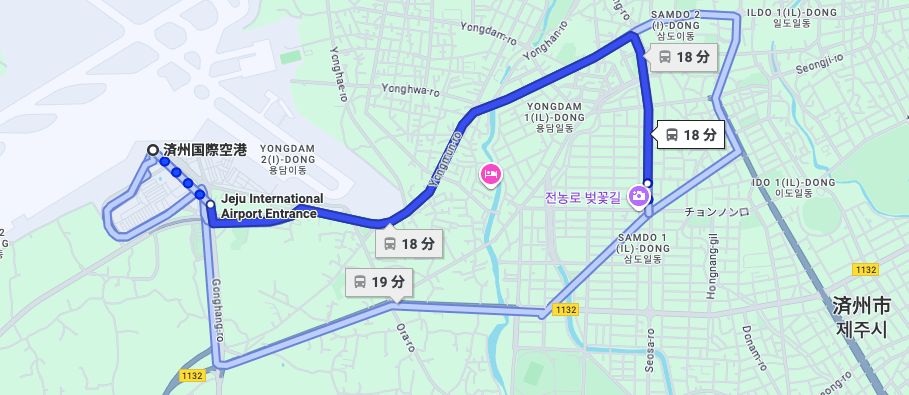 ※済州国際空港から済州市までの経路