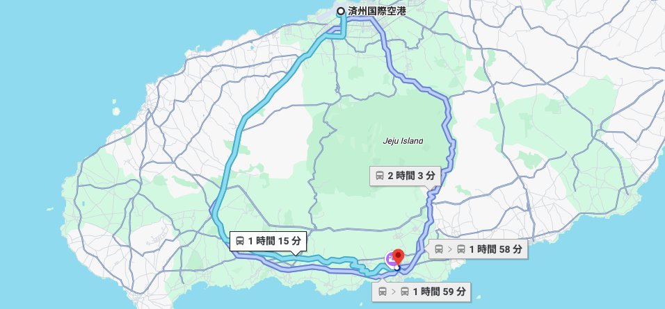 ※済州国際空港から西帰浦市までの経路