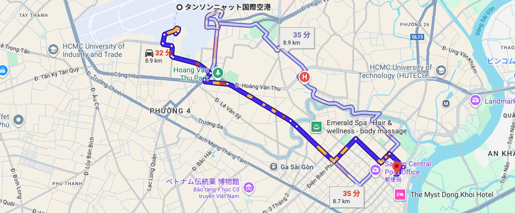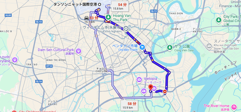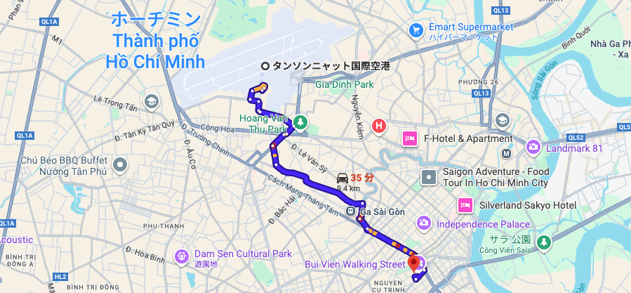 ※タンソンニャット国際空港からブイビエン通りまでの経路