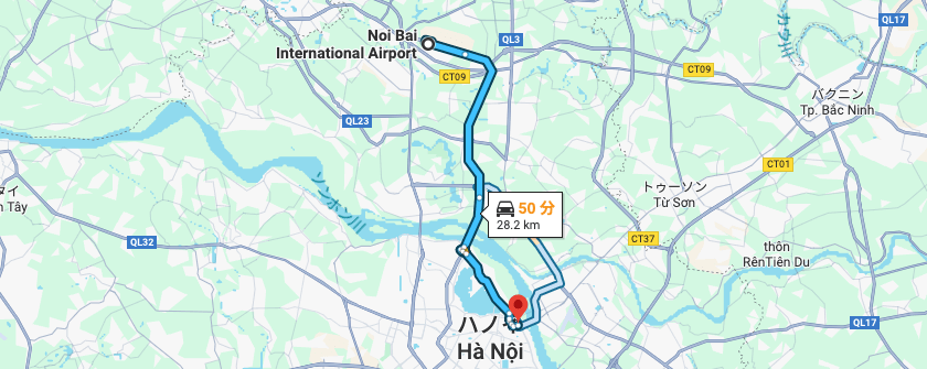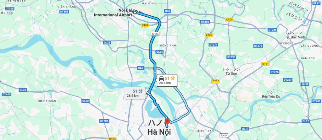 ※ノイバイ国際空港からダオ・ズイ・トゥ通りまでの経路